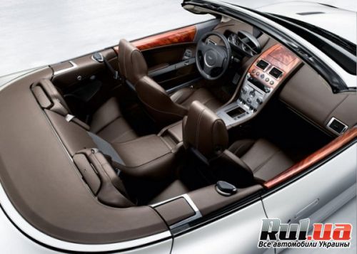 Четырехместный кабриолет Aston Martin DB9 Volante (Астон Мартин DB9 Волант) оснащен мягкой крышей, которая убирается, при помощи электроприводов, за 17 секунд. Главной задумкой кабриолета, является то, что крыша полностью убирается внутрь автомобиля, что придает Aston Martin DB9 Volante обтекаемый и элегантный вид. Багажник вмещает 197 литров.